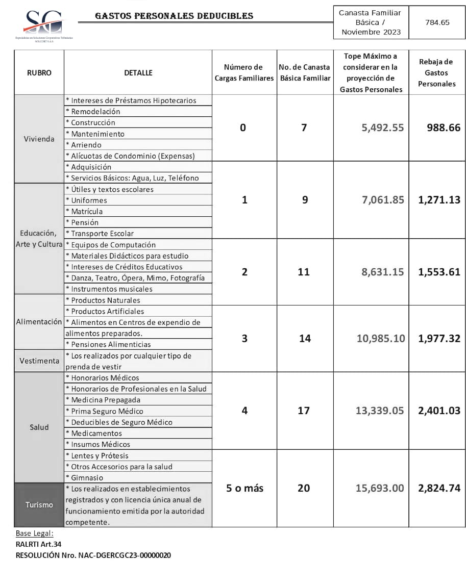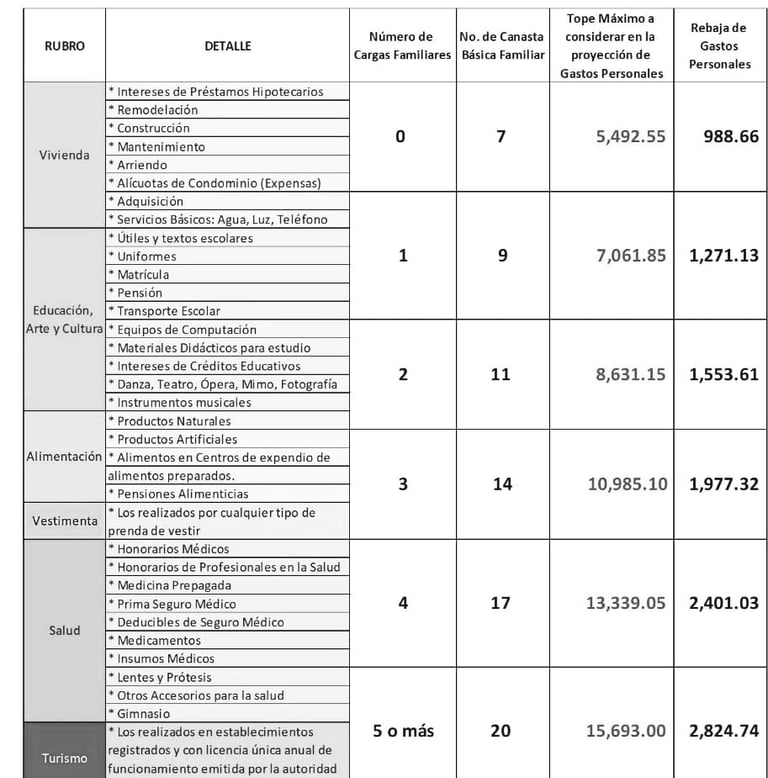 En febrero de 2024, los contribuyentes que se encuentren bajo relación de dependencia y que esperen obtener ingresos superiores a la base imponible establecida para el año 2023 (USD 11,902) o que perciban ingresos mensuales mayores a USD 991.83 en adelante, podrán presentar su proyección de gastos personales.